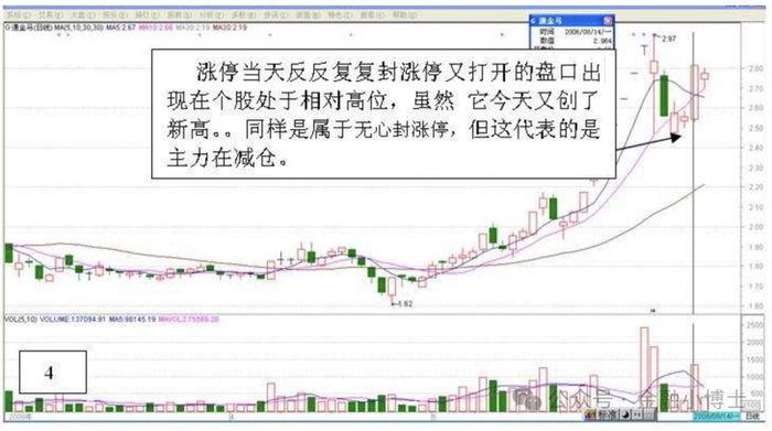 涨停当天反反复复封涨停叉打开的盘口出现在个股处于相对高位,虽然亡今天叉创了 新高 。同样是属于无心封涨停,但这代表的是 主力在减仓。