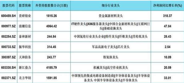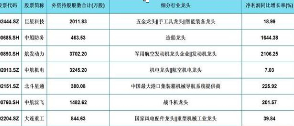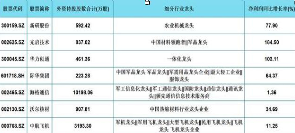 A股35只军工行业细分龙头(名单),外资持股超百万股