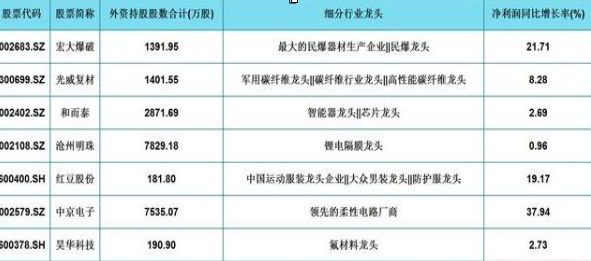 A股35只军工行业细分龙头,业绩上涨,外资持股超百万股,其中这35只分别为:贵研铂业、浪潮信息、泰和新材、振华科技、天和防务、浙江鼎力、北方华创、许继电气、东方精工、兴森科技、紫光国微、远光软件、通裕重工、华胜天成、宏大爆破、光威复材、和而泰、沧州明珠、红豆股份、中京电子、昊华科技、新研股份、光启技术、华力创通、际华集团、海格通信、沃尔核材、中航飞机、巨星科技、中船防务、航发动力、中航机电、北斗星通、中航沈飞、大连重工