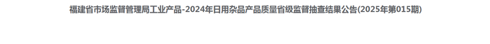 福建省卫生巾、卫生护垫产品质量省级监督抽查结果(合格)