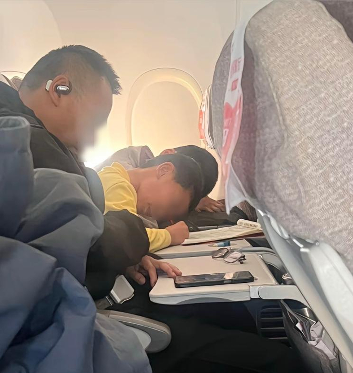 记者了解到,在寒假最后几天“高空作业”的小学生还不少。2月12日,网友“好运锦里”在昆明飞哈尔滨的飞机上偶遇一个小男孩,旁边的大人都在闭目休息,而小男孩却在小桌板上很投入地写作业,“在飞机上补了一路”。