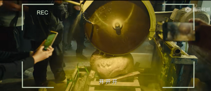 所谓“一刀穷一刀富”,在“开开开”的呼声中,一刀切下去,正当众人在期待开出什么宝贝的时候,哐当一声,巨石落地,观众看到的不是阳绿辣绿帝王绿,而是——人头一个!