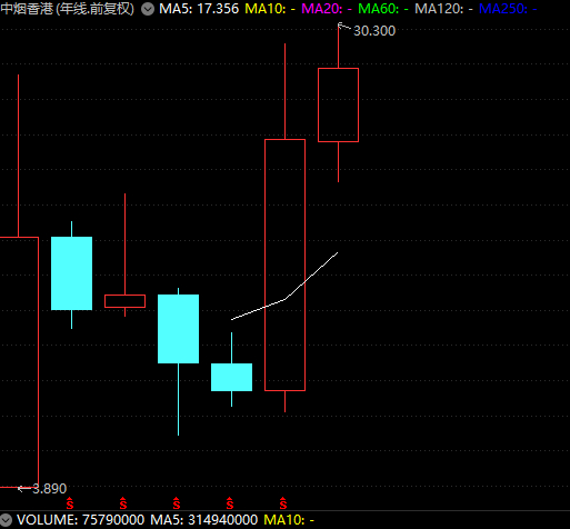近期港股中烟香港股价持续上行,本周初一度触及30.3港元/股,创出历史新高。自2024年开年以来,这家中国烟草总公司旗下国际资本平台已连年大涨,2024年全年累计涨幅高达148.81%,今年以来再度大涨超17%。