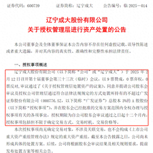 二是,虽然还是授权性质,但是市场还是非常关注此番举动的动机与逻辑,更多是战略方面的考虑。根据辽宁成大所发公告内文,此次授权管理层处置资产的核心目标在于推动公司战略资源聚焦。通过动态优化资产组合,辽宁成大计划将资源更多投向符合国家战略导向及产业升级需求的核心业务领域,加速培育新质生产力。