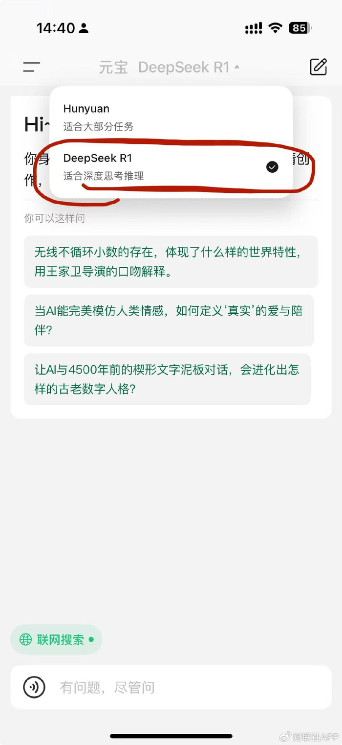 腾讯元宝接入Deepseek-R1满血版 支持联网搜索并整合公众号信息源