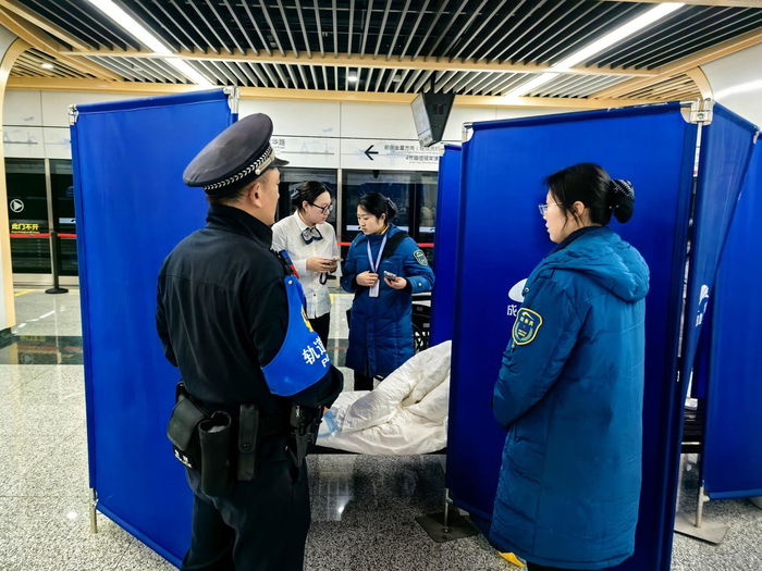为保护乘客隐私,车站工作人员迅速设置起屏风,杨钐脱下自己的羽绒服,垫在乘客身下,随后又拿来产褥垫为乘客清理,并不断安抚乘客情绪,“别怕,有我们在!”