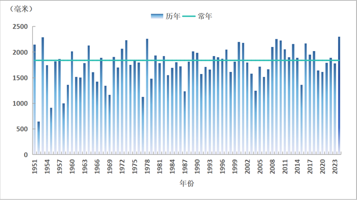 1951~2024年海南省平均年降雨量变化图(单位:毫米)