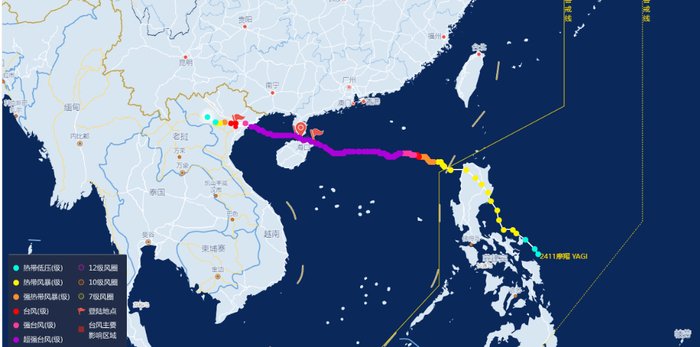 2024年第11号台风“摩羯”于9月6日16时20分前后在文昌市翁田镇沿海地区登陆(17级以上,62米/秒,中心最低气压915百帕),是有气象记录以来秋季登陆我国的最强台风,是仅次于“威马逊”登陆中国的第二强台风,4个市县突破当地日极大风速年极值或9月历史极值,2个市县突破当地日最大风速年极值或9月极值,海南文昌龙楼镇最大阵风66.7米/秒(17级以上)。全省经济损失严重,远超2014年登陆海南的第9号超强台风“威马逊”。
