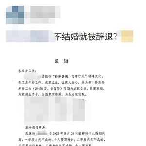 2月12日,有网友发帖称,山东临沂市沂南县一企业要求单身员工在限期内结婚,否则将解除劳动合同。