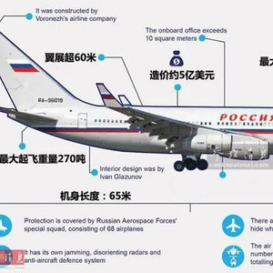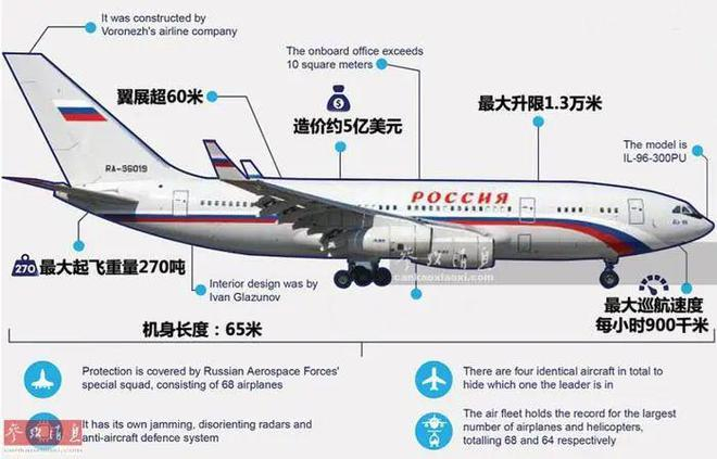另外俄罗斯其实也可以生产制造民用喷气式客机,其历史产量比中国还高的多,普京乘坐的专机就是俄罗斯国产的伊尔96系列中的伊尔-96-300PU,下图来自参考消息转载俄媒的报道,普京专机经过特殊改造,造价约5亿美元。