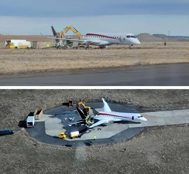 当地时间2023年3月8日美国华盛顿州,日本的第一架喷气式客机MRJ(三菱支线客机的英文,后来改名叫SpaceJet)的原型机,由美国品牌卡特彼勒的挖掘机进行拆毁。