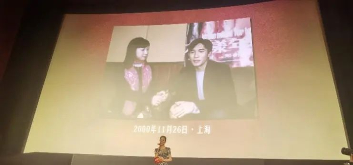 有趣的是,现场大银幕上一张照片显示:一位女记者在2000年《花样年华》首映时采访了梁朝伟,而多年后这位记者居然摇身一变成了演员,还参演了王家卫导演的《繁花》——你们猜猜她是谁?