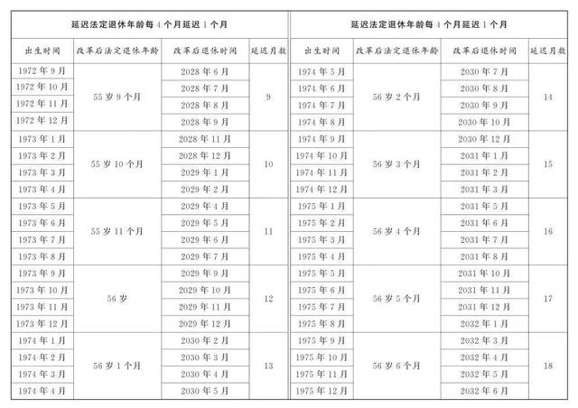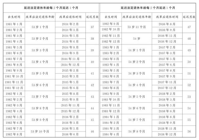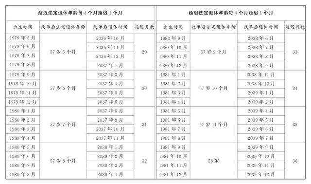 女性干部:55岁延迟至58岁,每隔4个月,延后一个月。