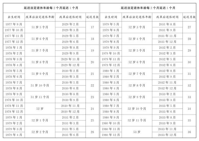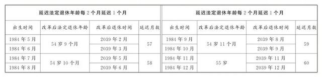 女性职工:50岁延迟至55岁,每隔2个月,延后一个月