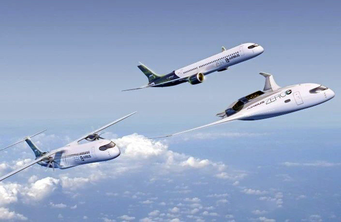 空客先前提出的3种不同构型和推进方式的氢燃料飞机。