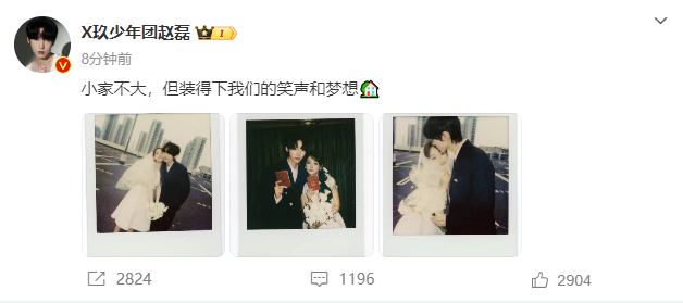 赵磊晒出3张照片,并表示:“小家不大,但装得下我们的笑声和梦想。”