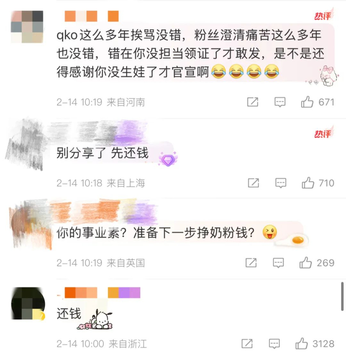 但评论区也有其他看法,一些疑似赵磊粉丝留言让他“还钱”。此前,赵磊作为内娱男团成员出道,还参加过选秀,被看作是“爱豆”,不少粉丝当时为了让他出道而“氪金”。