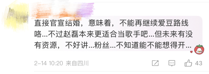 还有人认为,赵磊结婚后就不能再继续爱豆路线了。