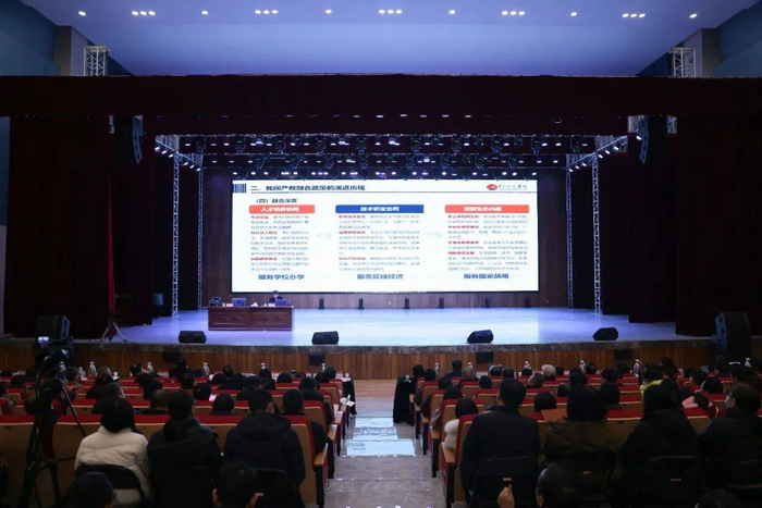 杨保成在报告中从政策演进:国家促进产教融合的制度变革;主要困境:产教深度融合面临的现实问题;系统设计:产业引领产教融合的生态构建;创新实践:黄河科技学院开展的主要探索四个部分展开深入解读。杨保成首先梳理了产教融合概念的诞生、政策的形成及推进过程,强调了产业与教育深度融合的重要性。他从问题导向出发,指出当前应用型高校专业结构调整存在三个适配度不高的问题,即本科专业结构与国家战略急需的适配度不高、本科专业结构与区域经济发展的适配度不高、本科专业建设与学生全面发展适配度不高。并提出深化产教融合面临的四个积极性问题,涵盖了企业、高校、教师和学生,亟待解决。针对这些问题,报告提出三个解决路径:产业教育化、项目化教学、个性化教育,以此作为切入点,解决高校人才培养与社会需求脱节的根本问题。就产业引领产教融合的生态构建,杨保成强调,在教育强国建设的新时代背景下,我们要借鉴世界一流大学质量控制原理与方法,应用型高校要坚持产业教育化的办学思路,努力创建具有中国特色的一流应用科技大学,其核心内涵是坚守中国特色,具备一流的办学理念、体制机制、办学资源、师资队伍、课程体系、人才培养、社会满意度、产业支撑度、创新引领力、区域贡献度、社会认可度、社会影响力以及面向产业发展。