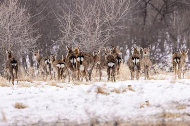 2月12日,摄影爱好者刘佰玲在珲春市杨泡乡拍摄到一组野生獐子和梅花鹿的图片。画面中,成群的獐子和鹿穿梭在山林中,或奔跑或觅食,这些悠闲的镜头,勾勒出一幅野生动物与大自然和谐相处的精彩画卷。