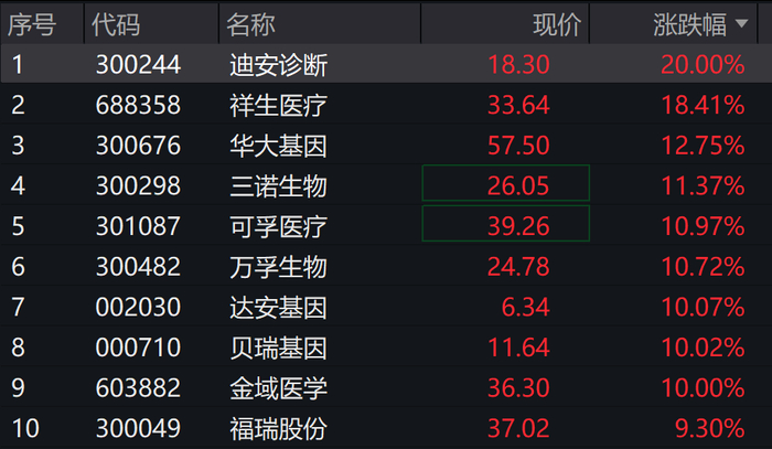 AI医疗概念继续走强,医疗器械ETF(159883)涨近4%,迪安诊断20%涨停