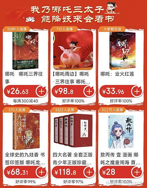 此外,由《哪吒2》片头概念艺术家段磊(午夜猴子)创作的《封神》艺术画集,以及《哪吒:业火红莲》、《哪吒敖丙之龙战东海》、哪吒主题邮票珍藏等优质好书和衍生产品都受到了消费者的广泛欢迎。