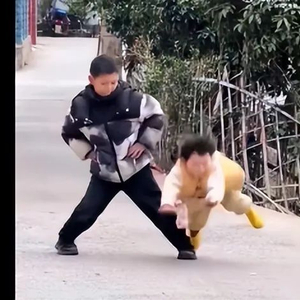 视频中,小女孩在路上蹦蹦跳跳地走着,被旁边的小男孩突然用脚绊倒,致其摔倒并大哭。