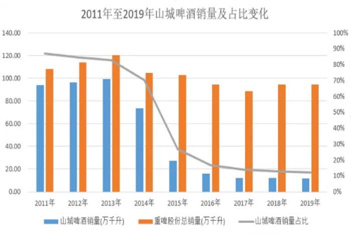 在嘉士伯削减产销量、品牌边缘化、挪用营销费用等手段下,山城啤酒几欲消失于山城。