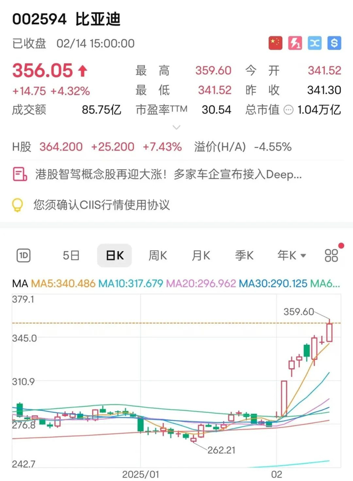 怪不得近几天比亚迪股价涨疯了,市值已经突破万亿。
