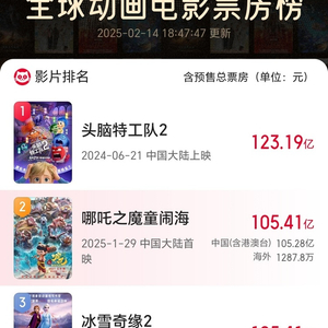 《哪吒2》进入全球动画电影票房榜TOP2