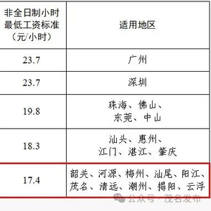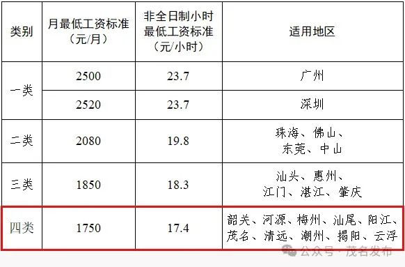 广东调整最低工资标准!下月起,茂名提高至1750元/月