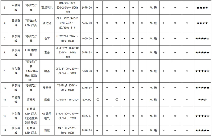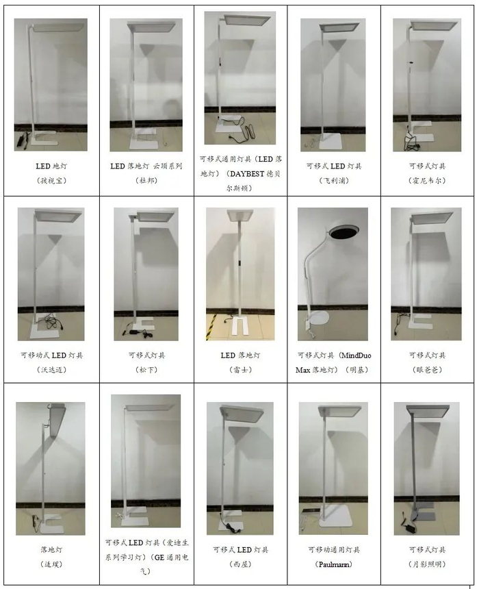 本次比较试验的15批次样品均带有可调光/调色功能,故该项目按照说明书内容将产品调节至读写作业档位进行试验。对于未在说明书中宣称有读写作业档位的灯具,按照GB/T 9473-2022中表4内容调节产品至对应状态后进行试验。