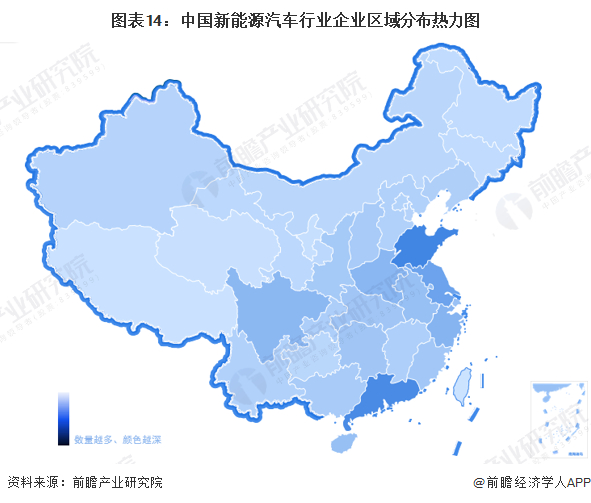 从企业分布来看,从新能源汽车行业企业区域分布来看,目前国内新能源汽车行业注册企业主要集中在华南、华东一带,重点是山东、广东、江苏、浙江等地区,上述地区是国内新能源汽车产能主要集聚区,与此同时,也吸引众多的新能源汽车整车制造配套企业入驻,市场竞争较为激烈。