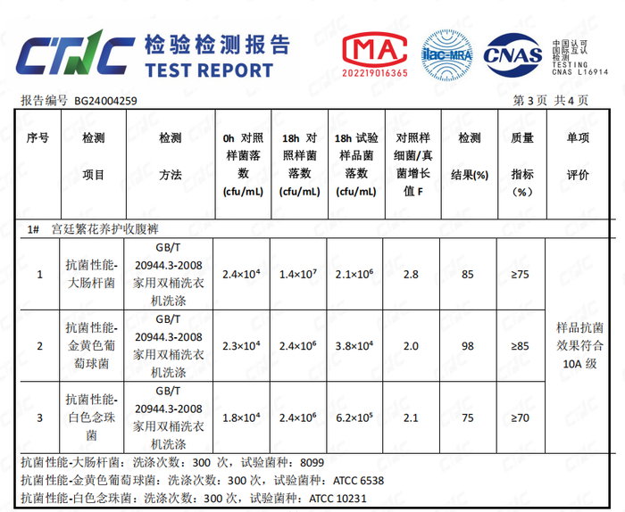 真正地达到了10A抗菌,婴幼儿养护级别: