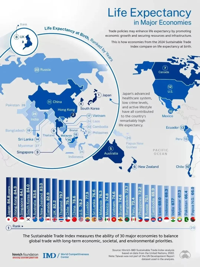△ 全球29个主要经济体人均预期寿命(来源:Hinrich基金会)