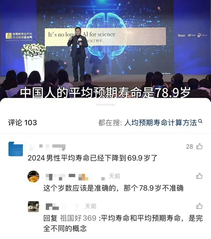 首先,人口学上并不存在“平均寿命”的概念,与其提到内容相似的仅有“平均死亡年龄”和“人均预期寿命”,但都不能支持他的结论,甚至他从一开始可能就没弄明白这些指标的意义。