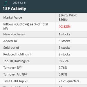 值得一提的是,伯克希尔前十大重仓股中另一个有意思亮点似乎在于“不动”——在2024年早些时候削减对苹果公司的持股后,伯克希尔在去年的最后几个月没有再改动对苹果的相关持仓。目前,这家iPhone制造商仍是伯克希尔的最大重仓股,占其投资组合比重的28%。这部分股份的价值在本季度上涨了已逾50亿美元。