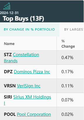 13F报告显示,伯克希尔在去年四季度还买入了酒业巨头Constellation Brands、达美乐披萨、VeriSign、Sirius XM和Pool公司。