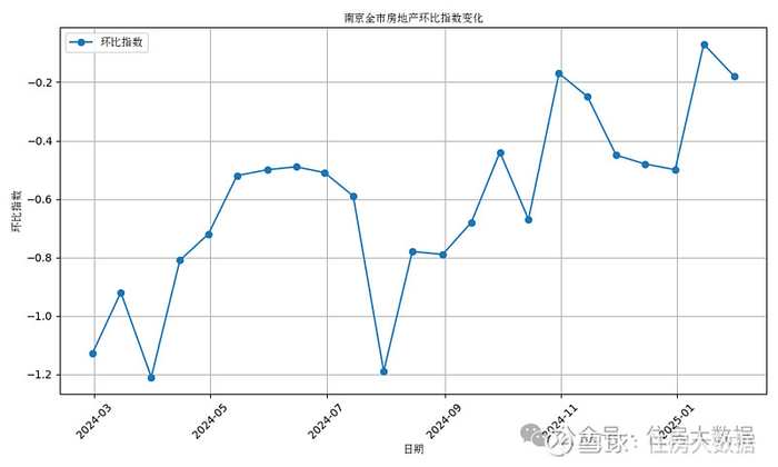 本报告基于南京市全市范围内的房地产数据,分析了自2024年3月至2025年1月期间,每隔半个月的房价环比指数变化情况。数据涵盖了20个时间节点的环比指数,为短期房价走势提供了详实的基础。