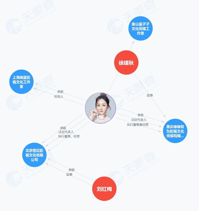 天眼查显示,姚笛共关联4家企业,其中上海姚笛影视文化工作室为存续状态。该公司成立于2012年7月,投资人姚笛,出资额50万元,由姚笛100%持股。年报信息显示,该工作室连续7年无人参保。