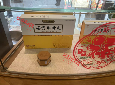 彼时仍然沉浸在农历新春的氛围中,商业街上熙熙攘攘的游客络绎不绝,不少人驻足在药店门口的铜像前合照留念。本刊人士以游客和消费者的名义推门而入,与三位店员攀谈起来,发现处于售卖柜核心位置的是龟龄集、w龟龄集酒、定坤丹、牛黄清心丸、安宫牛黄丸等核心产品,并未见到任何一款白酒的踪影。