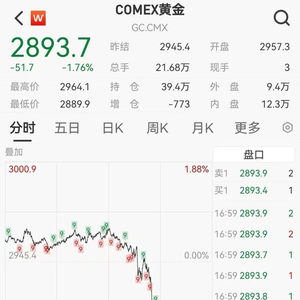 金价昨晚表演了“高台跳水”, 在接近历史新高3美元处涨势停滞,随后突发暴跌,自当日高位一度下跌逾60美元。