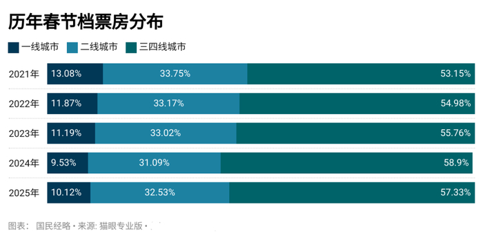 《哪吒2》成为中国首部百亿票房影片,三四线城市贡献了半壁江山,盐城、临沂、阜阳位居前列,低线城市已连续5年占比超过50%。
