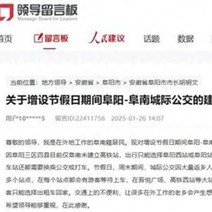 近日,网友在人民网“领导留言板”上关于节假日期间增设城际公交频次的留言,获安徽省阜阳市阜南县回应。