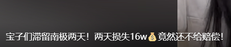百万粉丝网红发视频表示,自己在去南极的时候也遇到航班延误,2天损失16万左右,没有任何赔偿。