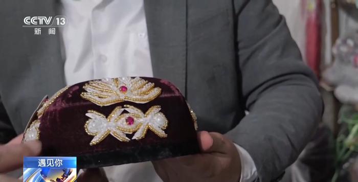 90后小伙子艾麦提,是喀什现在小有名气的手工花帽生产商。坡拉提汗想着,把这些带着浓郁民族特色的花帽带到列车巴扎上,肯定能增加不少人气。