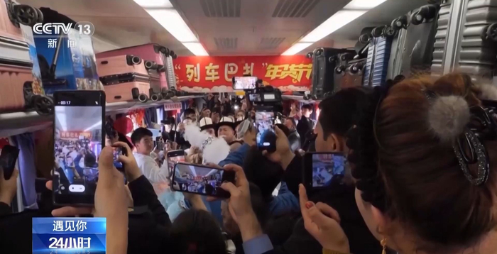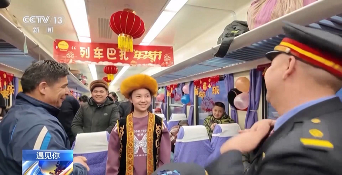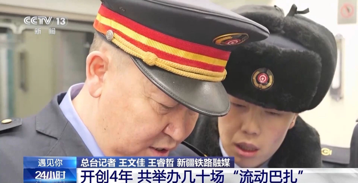 国铁乌鲁木齐局库尔勒客运段列车长 坡拉提汗:欢迎大家坐我们和田开往乌鲁木齐的7557/7558次“和田玉龙号”列车!我们7557/7558次春节之前,每十天搞一次“列车巴扎”年货节,我们今天年货节的主题是,公益助力,乡村振兴。我们最大的目的是,通过我们“和田玉龙号”公益小慢车,让南疆各民族的农产品越走越远!喜欢农产品的同志们到11号、12号车厢选购自己喜欢的产品。