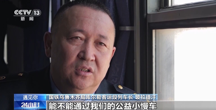 他就是乌鲁木齐铁路局库尔勒客运段7557/7558次公益小慢车——“和田玉龙号”的列车长,坡拉提汗,哈萨克族,今年47岁。坡拉提汗在列车上做乘务工作已经28年。