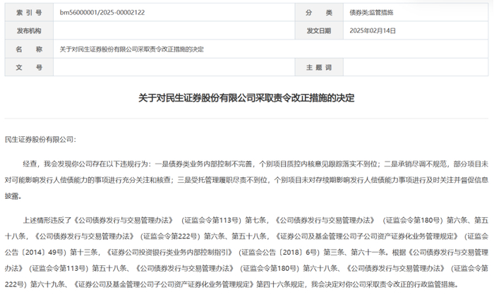 同日,民生证券也被证监会责令改正。