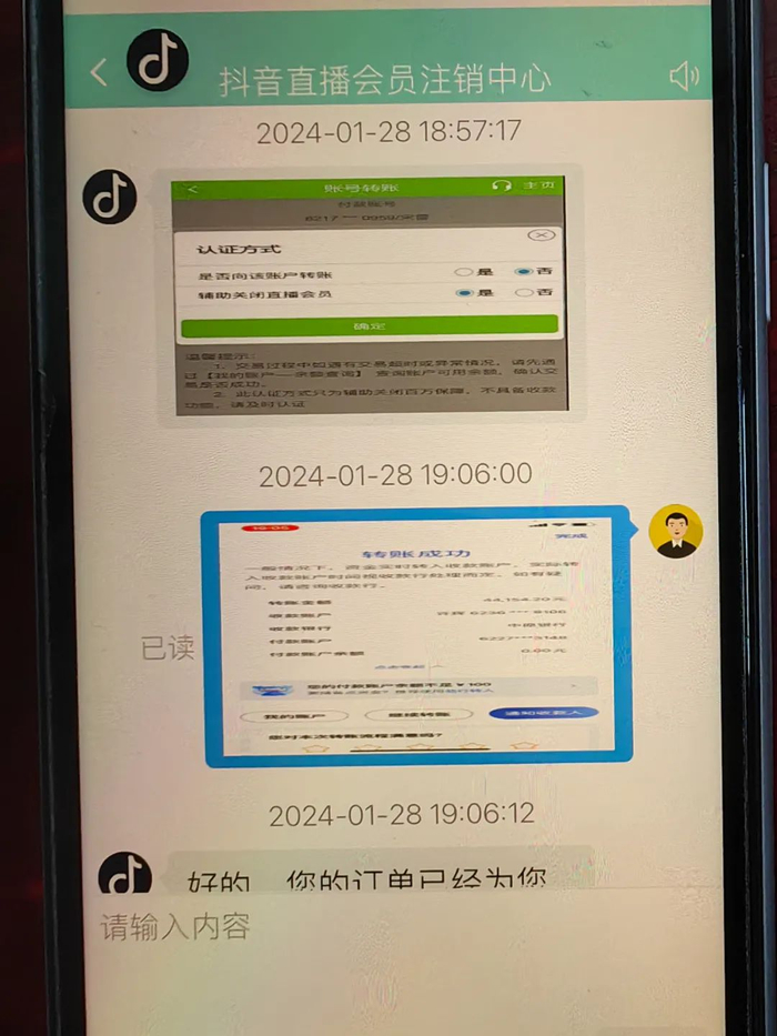 随后,“抖音直播会员注销中心”一步步引导王女士操作,并表示验证完成后系统会自动返还资金并关闭服务。